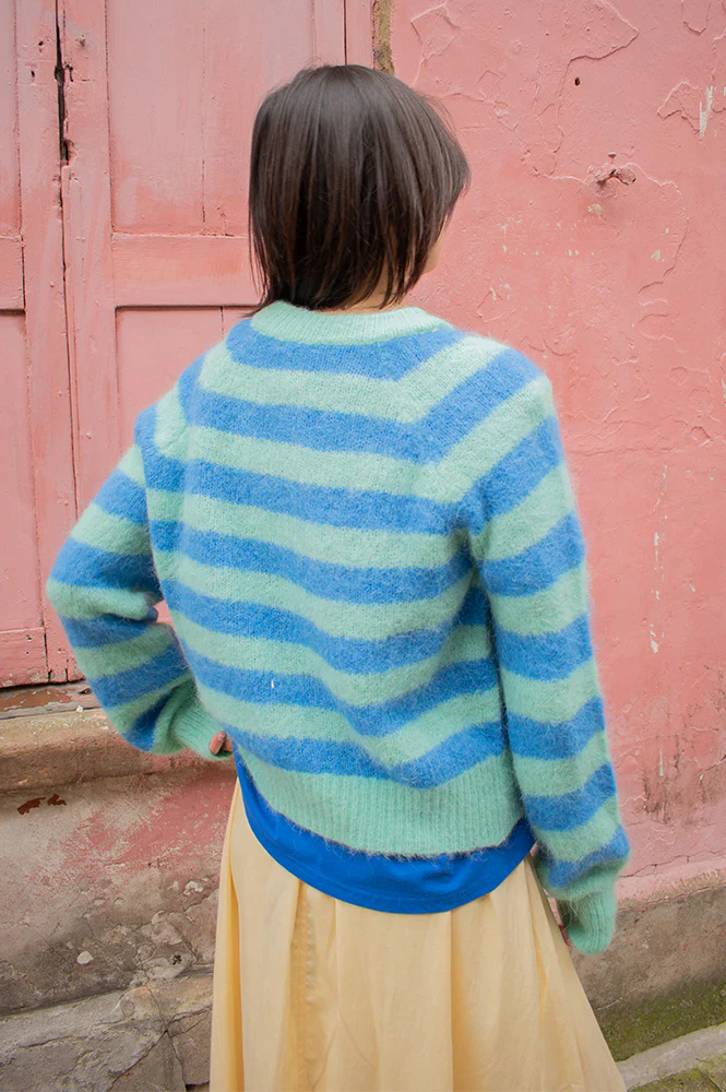 FRNCH Azur Blue & Mint Stripe Cardigan