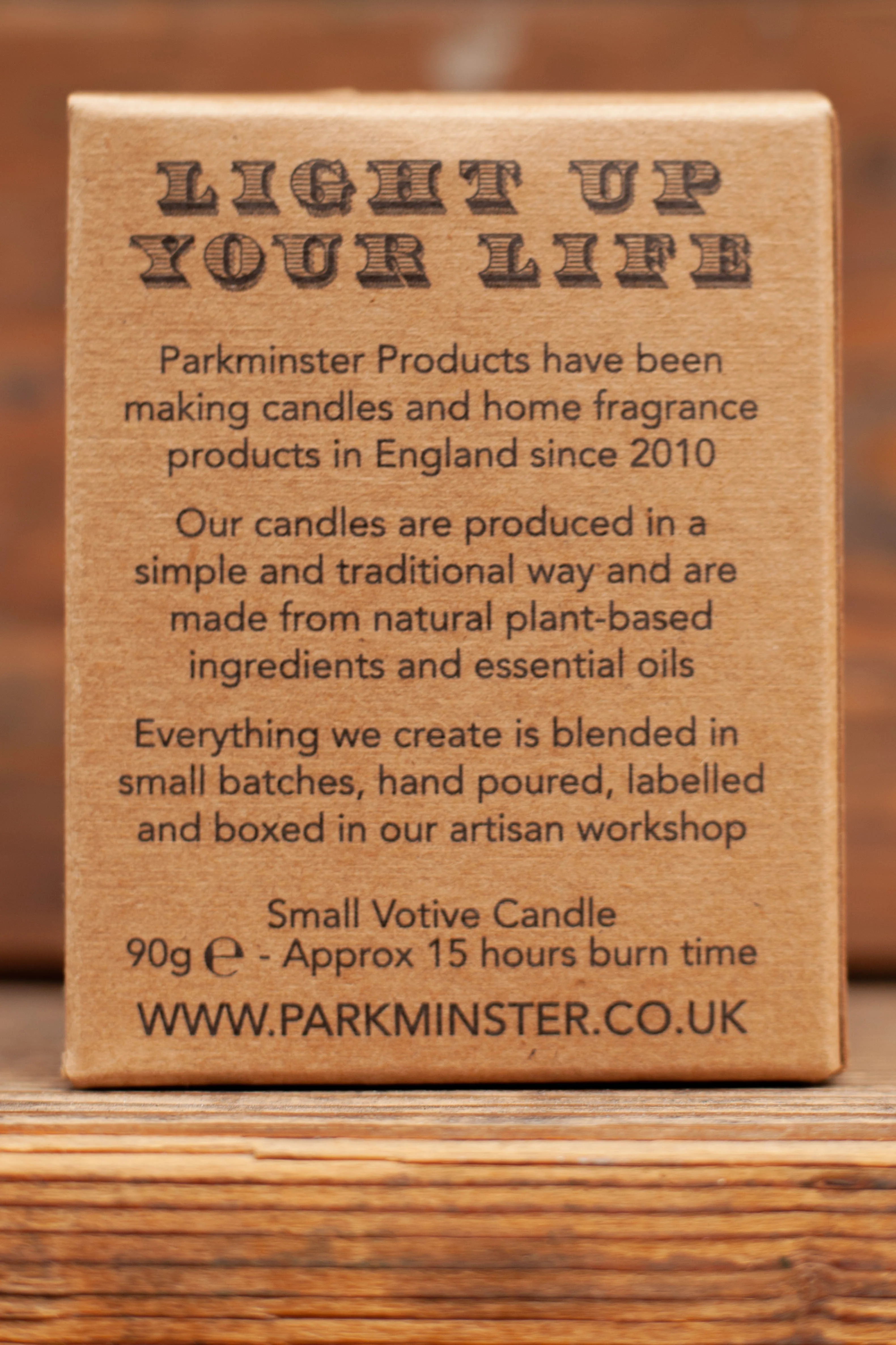 These lovely small candles are perfect for the bathroom & kitchen. The votive candles come in a kraft paper box with star cut-outs. They make a perfect small gift for friends or family.
